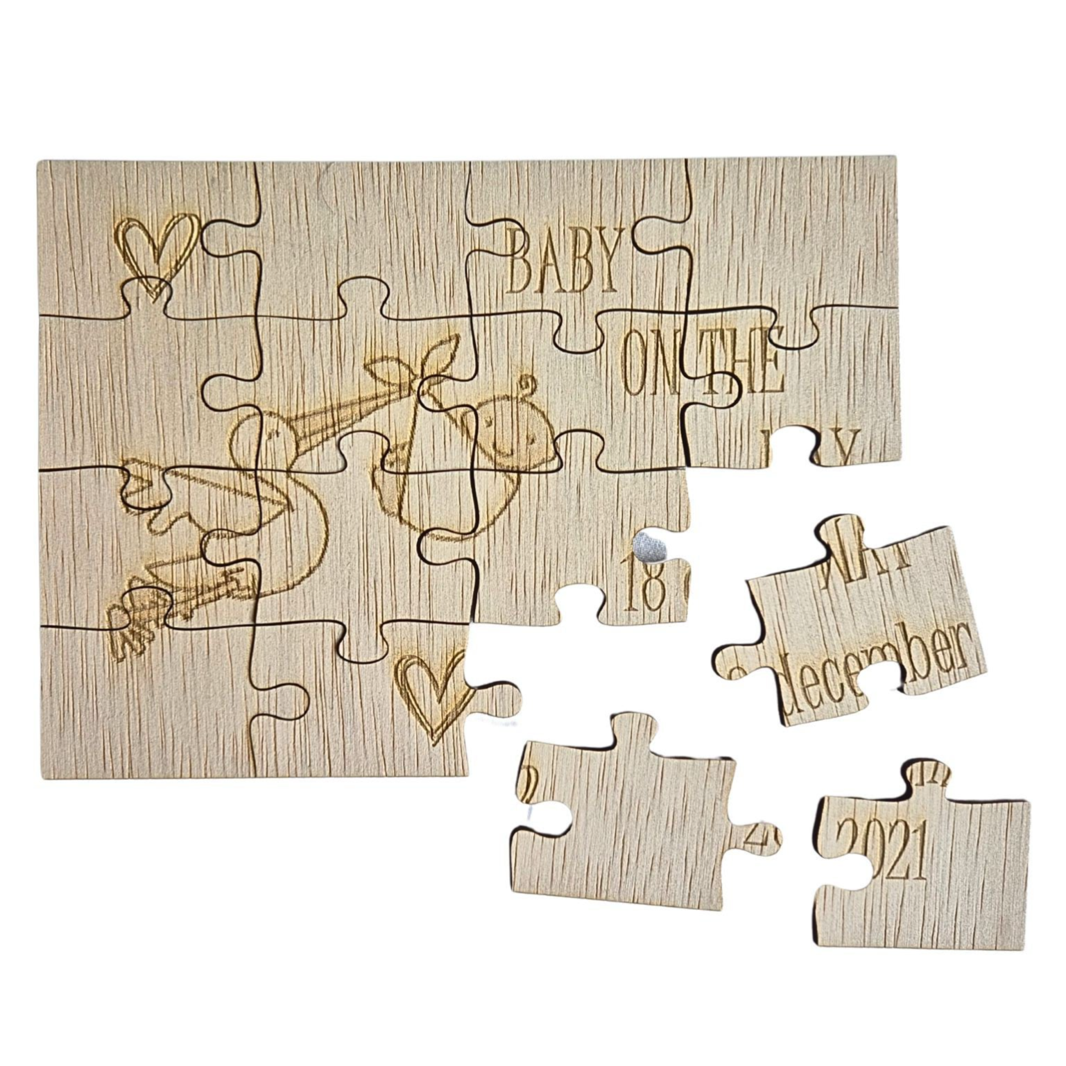Deze puzzel is gemaakt van hout en heel leuk om te geven aan bijvoorbeeld opa en oma als kennisgeving van jullie zwangerschap.